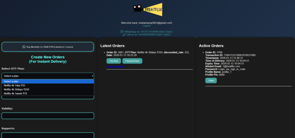 Inspired by the need for an affordable way to enjoy legal content, Treatflix is here to provide a solution. Try Treatflix today and enjoy Netflix for just Rs 35! It’s the perfect solution for short-term entertainment needs.